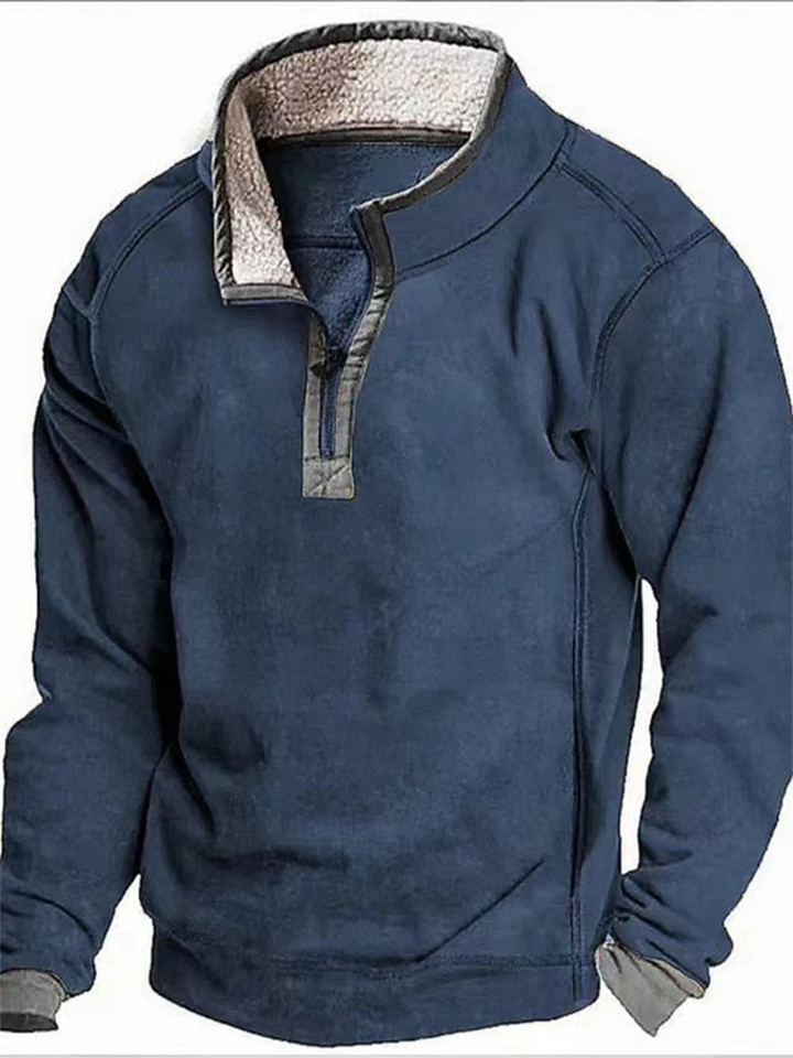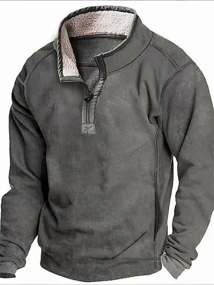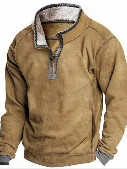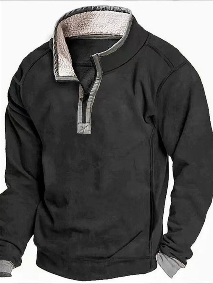 Solid Color Hoodie Men's Casual Hoodie Stand Collar Fleece-Lined Hoodie Fall/Winter Top