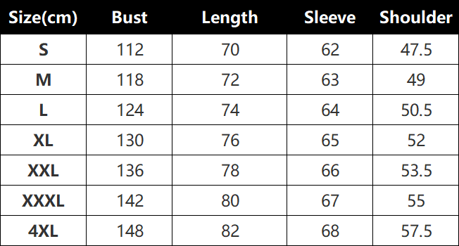 Sizes: S, M, L, XL, 2XL, 3XL, 4XL, 5XL