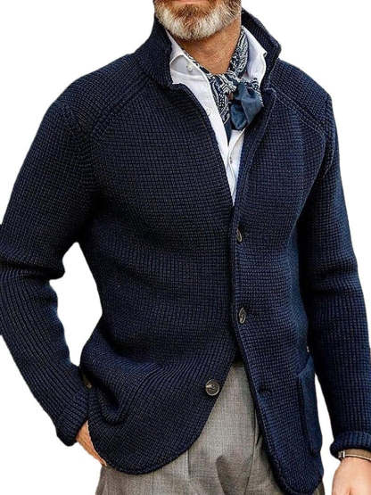 Solid Color Stand Collar Cardigan Men's Knitted Coat
