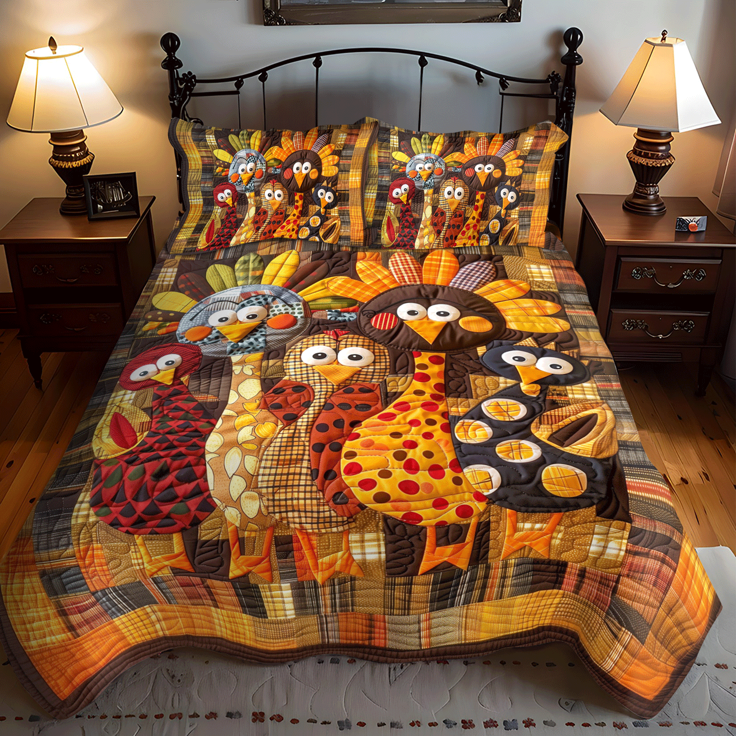 Thanksgiving Family 3-Piece Quilted Bedding Set NCU0TH1102