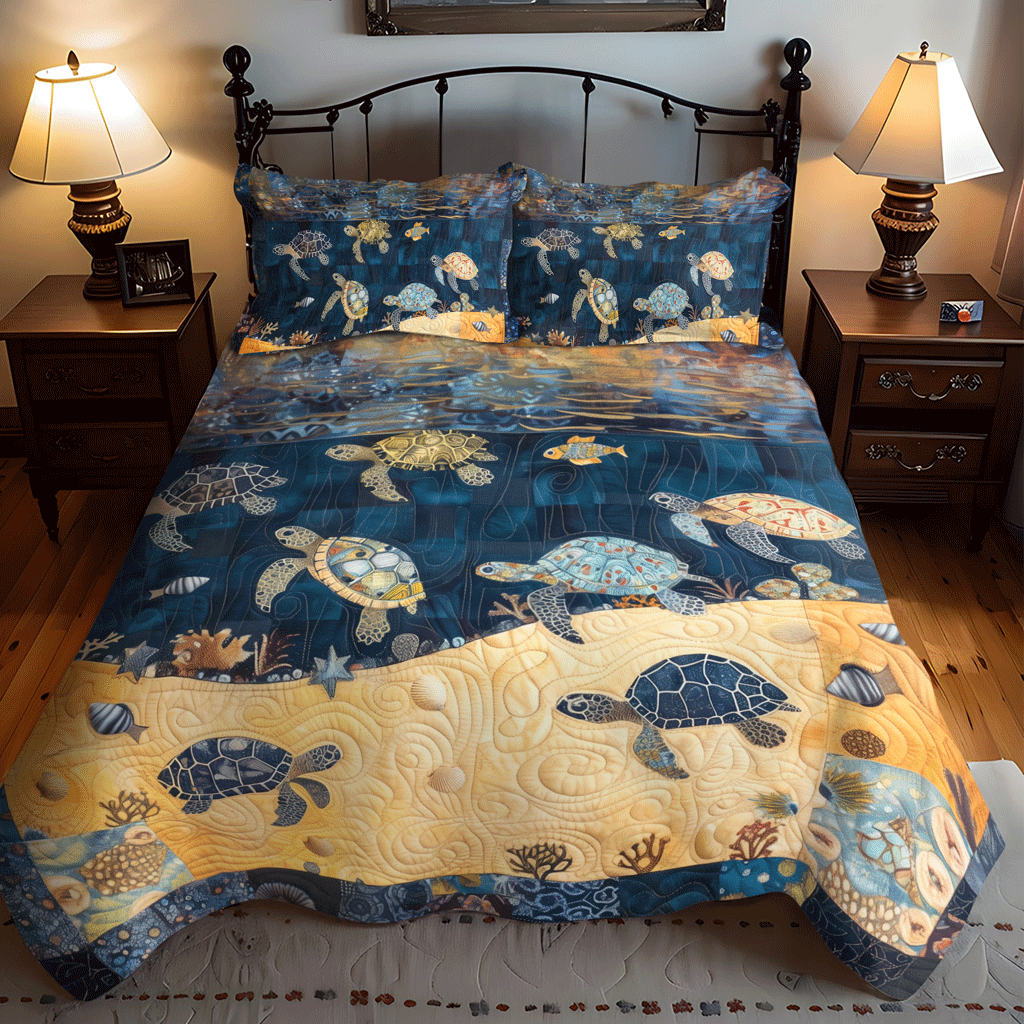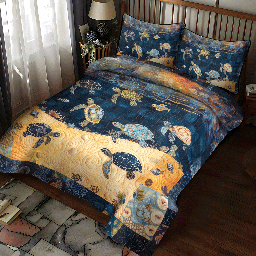 Turtley Night 3-Piece Quilted Bedding Set NCU0TH1341