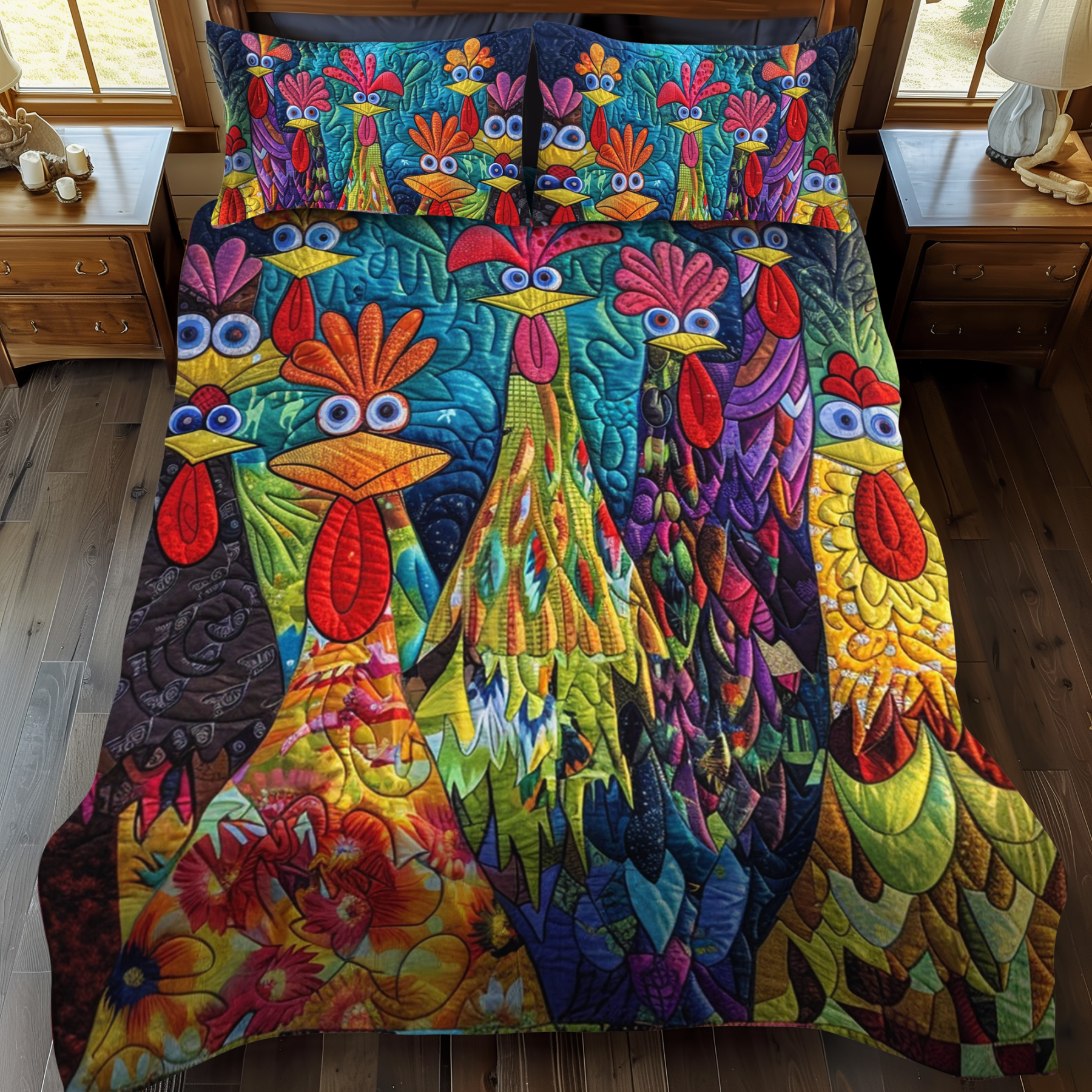 Whimsical Chickens 3-Piece Quilted Bedding Set NCU0PT054