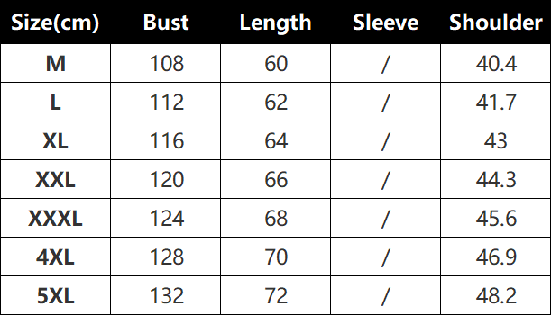 Size:M,L,XL,2XL,3XL,4XL,5XL