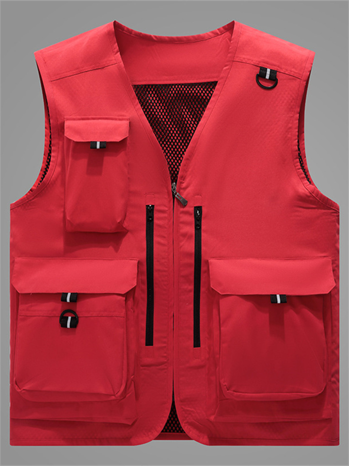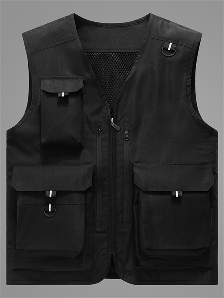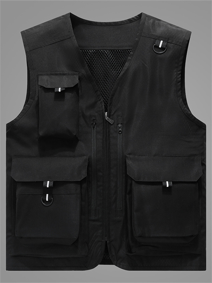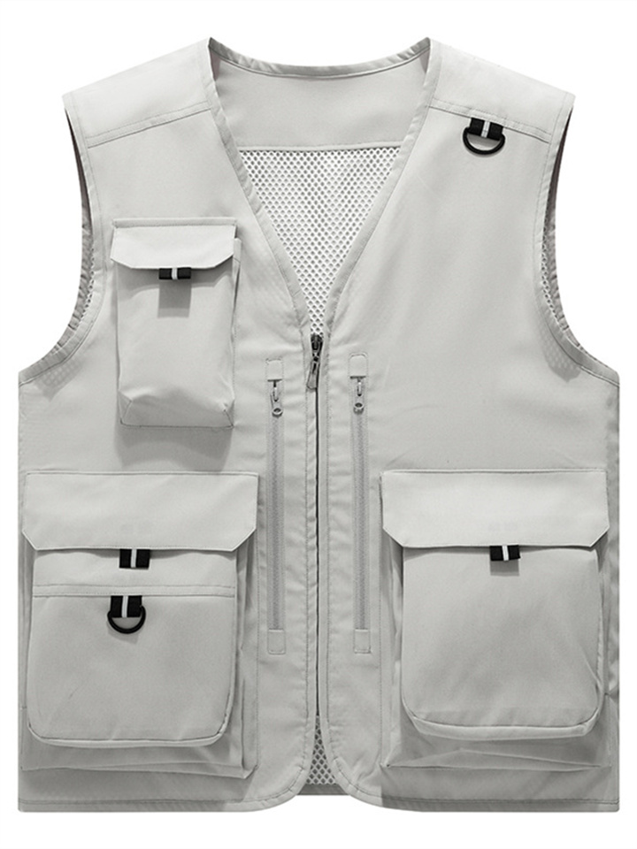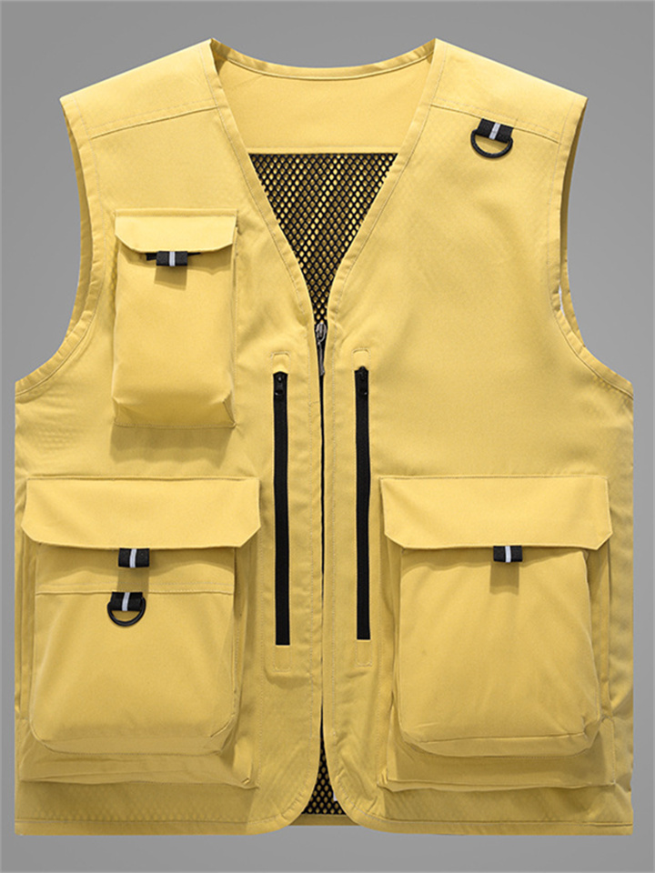 Workwear Vest Men's Outdoor Multi-pocket Undershirt Solid Color V-neck Vest Jacket